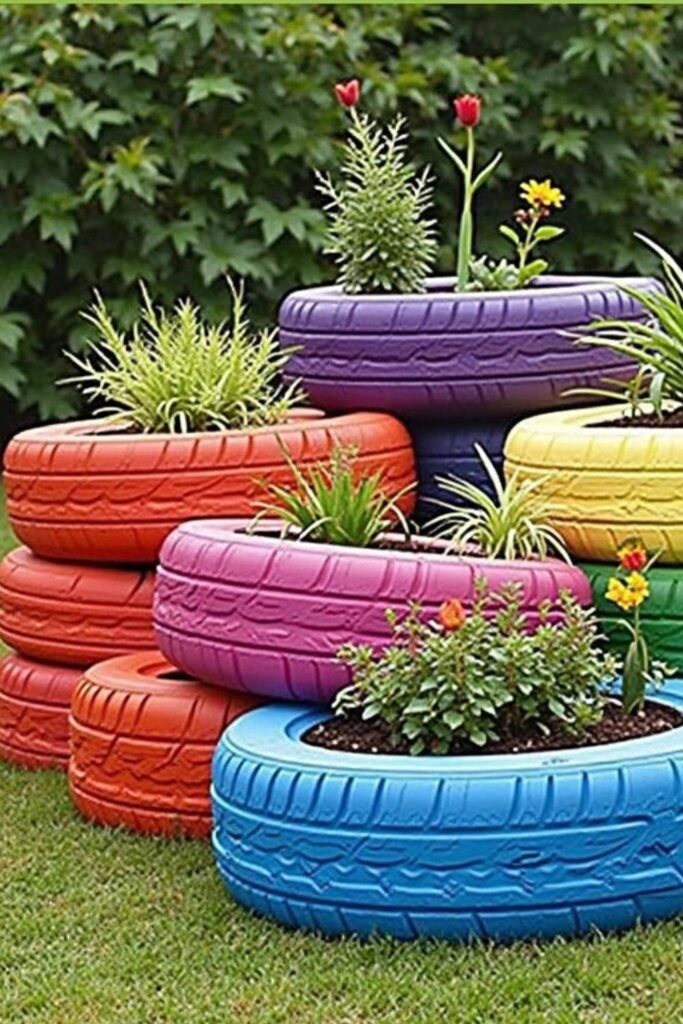 Infuse your garden with vibrant charm using DIY colorful tire planters. This creative project breathes new life into old tires by painting them in bright, weather-resistant hues.