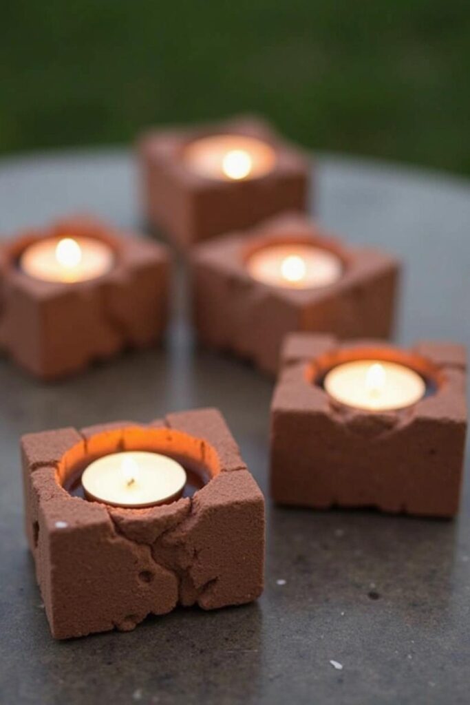 Illuminate your evenings with enchanting brick candle holders. By hollowing out spaces in small bricks, you create perfect spots for tealight candles. Arrange these charming holders on tables or along pathways to cast a warm, ambient glow.