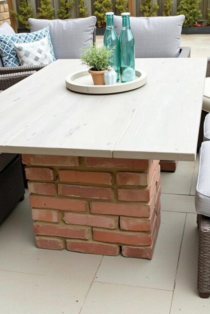 This DIY brick table combines function and style, offering a rustic touch with practical use. Perfect for family gatherings or casual meals, the table serves as a central piece in your patio or garden.