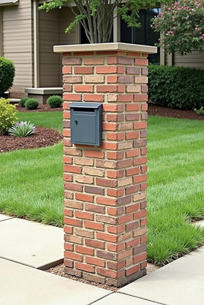 Build a durable mailbox post using bricks, arranged around a metal post for added strength. This brick structure provides a classic look that withstands weather conditions with minimal maintenance needed.