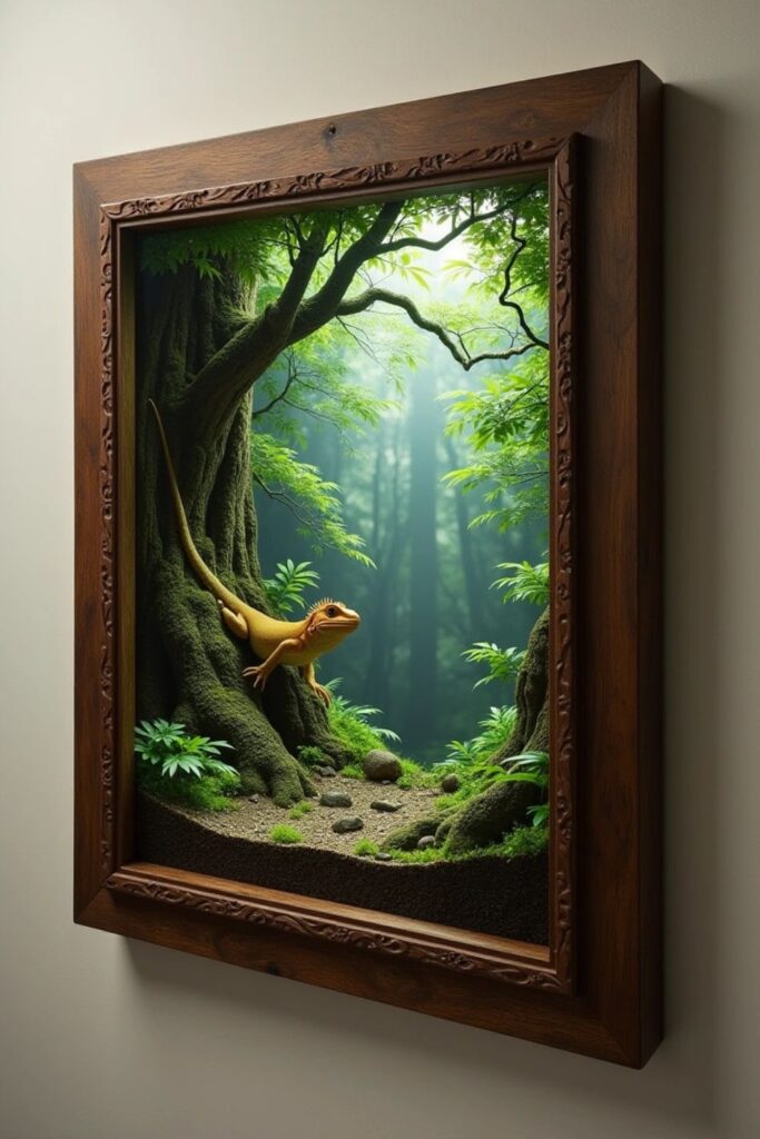 Elevate your wall decor by transforming a deep-set frame into a serene forest ecosystem.
