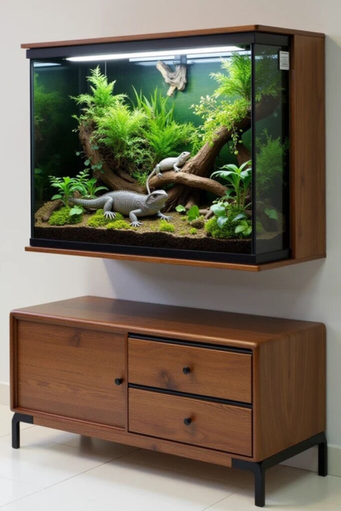 This setup combines beauty with functionality, giving both your reptiles and your living space an elevated style.