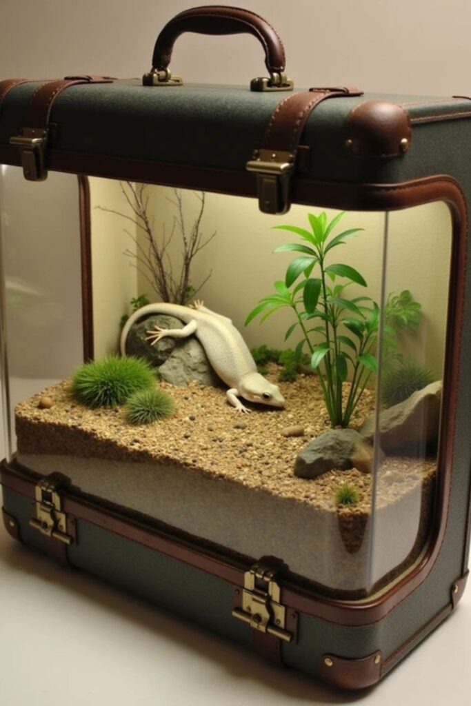 Repurpose a vintage suitcase into a portable, stylish home for small reptiles.