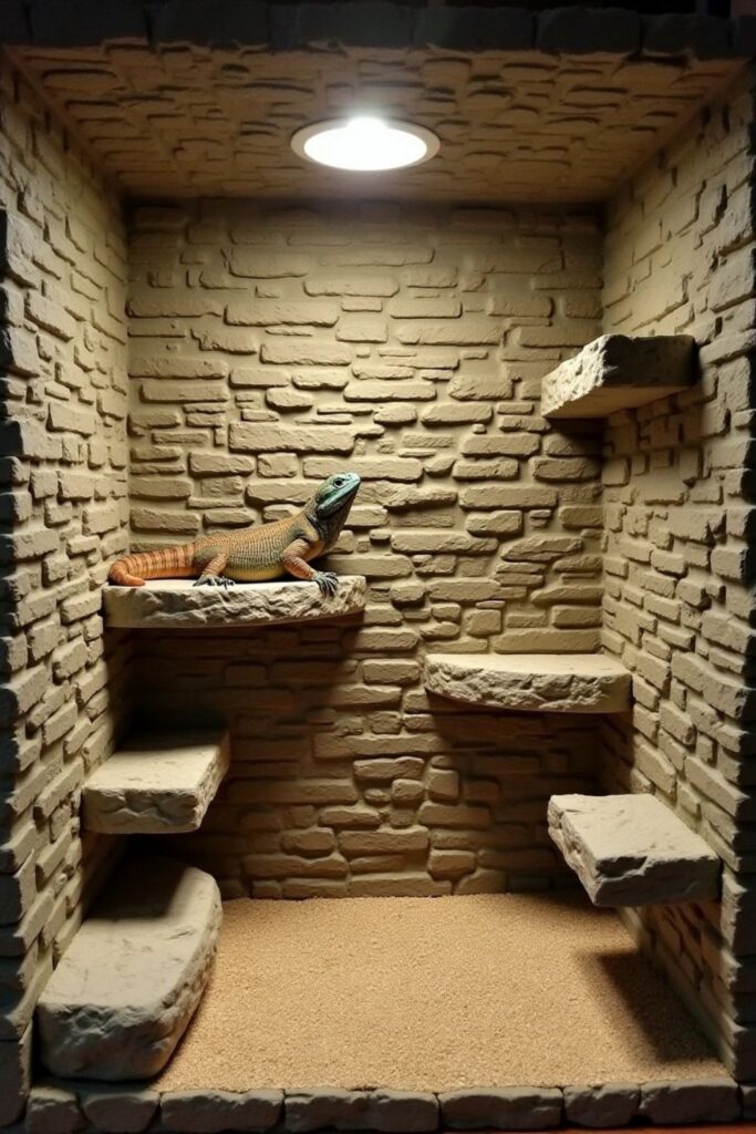 Line the interior with a realistic rocky backdrop and soft substrates perfect for small reptiles.