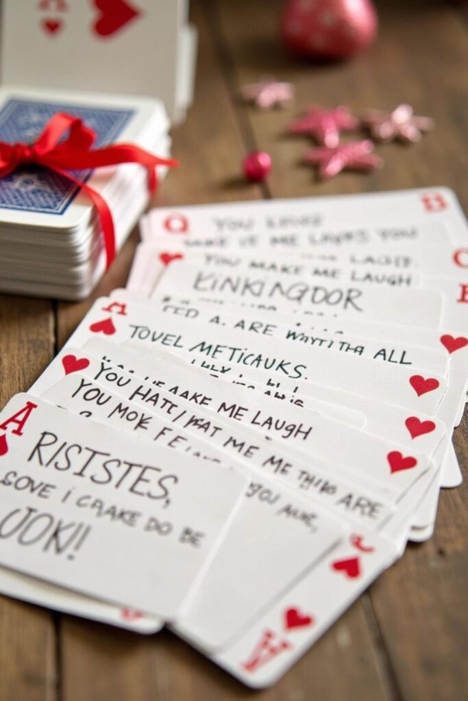 Create a heartfelt “Reasons I Love You” booklet from a simple deck of cards. On each card, write one thing you love about him, like “You make me laugh” or “You’re my rock.”