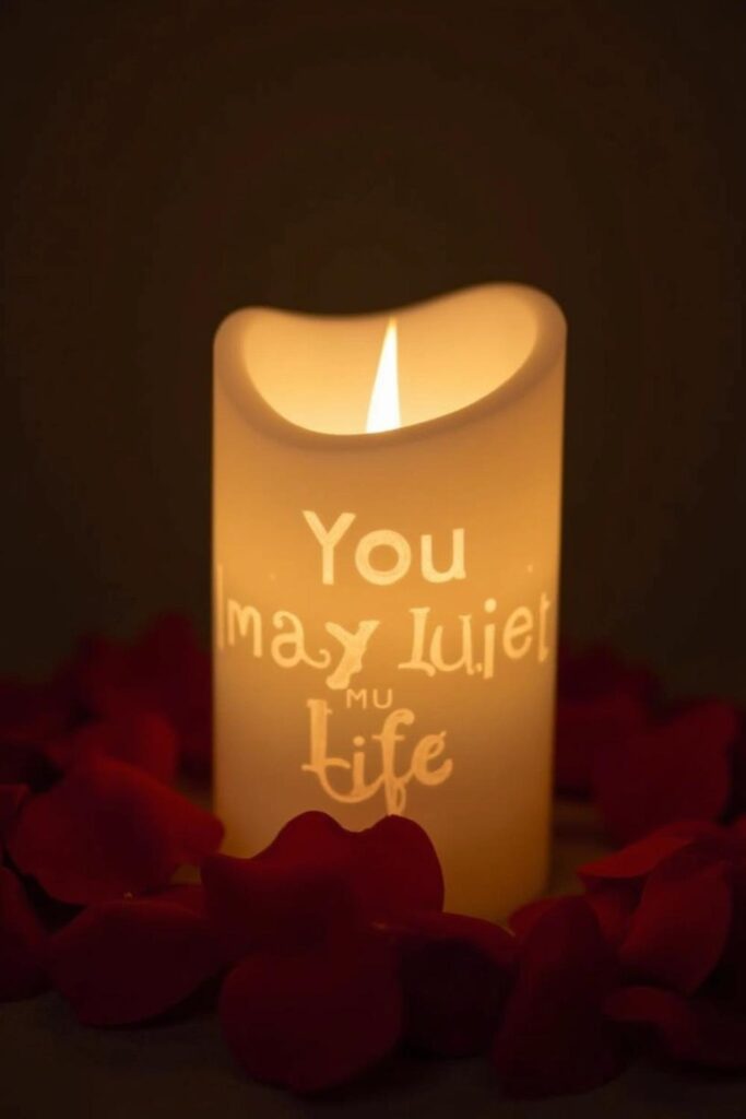 Add his favorite scent, like sandalwood or vanilla, for a thoughtful touch. Once the candle sets, carve a special message like “You light up my life” or your initials onto the surface using a fine tool.