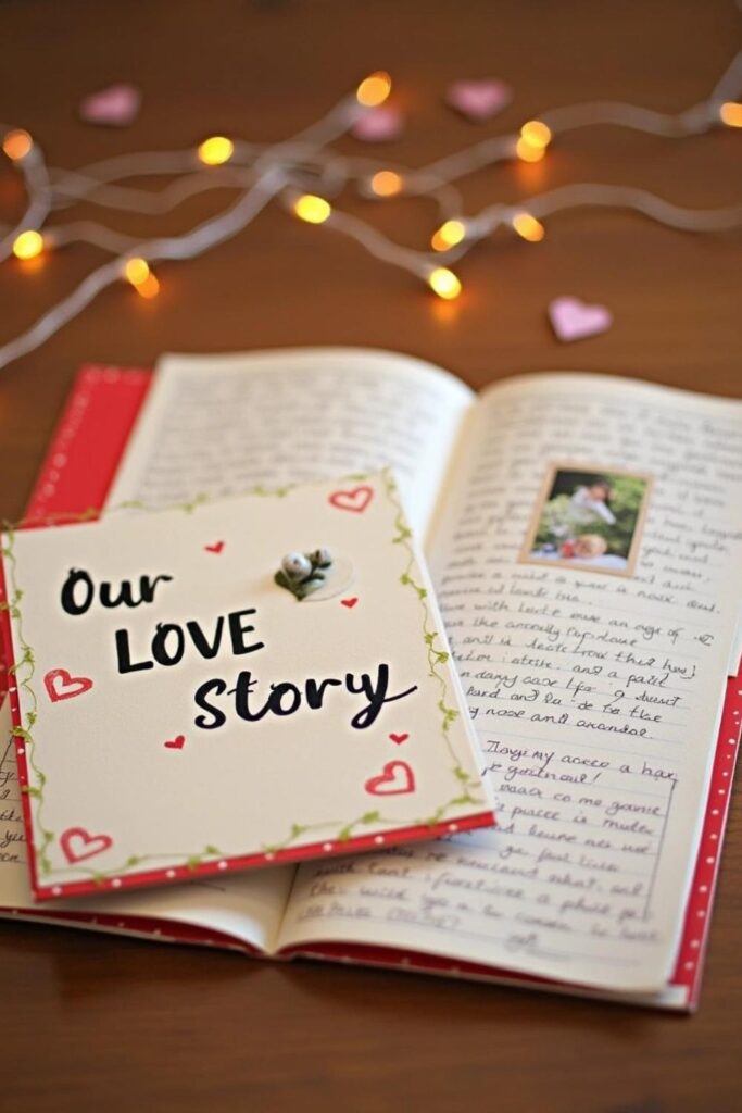 Create a beautiful booklet that tells the story of your relationship, starting from the beginning up to now. Use cardstock or decorative paper to make the pages feel special. Put it together with staples, rings, or ribbons for a finished look.