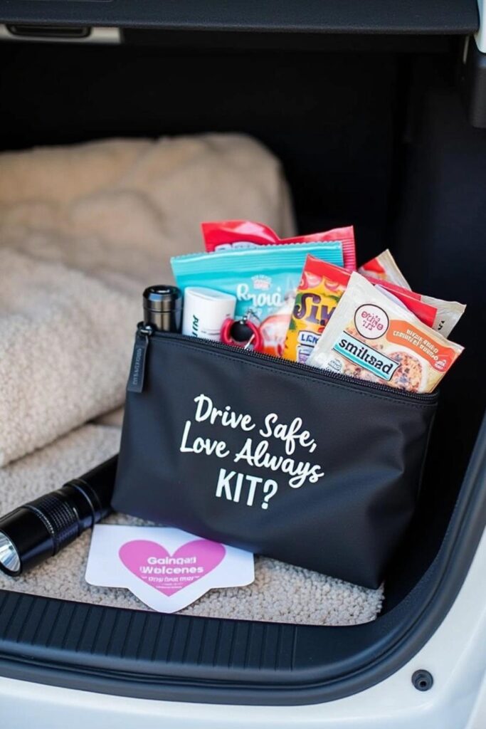 Label it with a playful phrase like “Drive Safe, Love Always.” This gift is not just thoughtful but also helps ensure his safety wherever he goes.