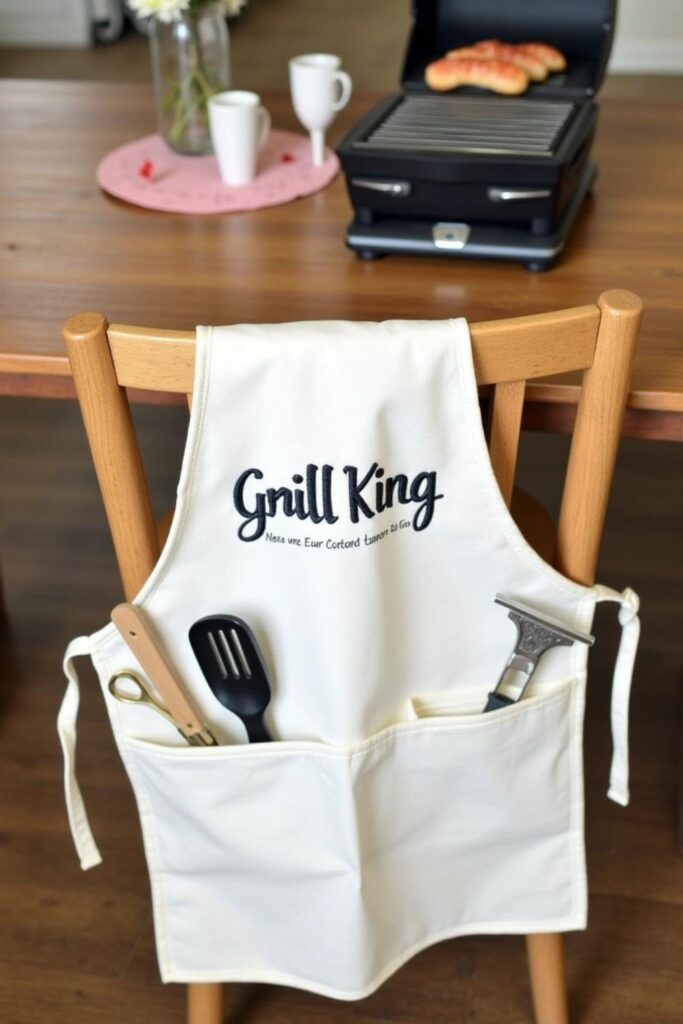 Add his name, a playful title like “Grill King,” or eye-catching designs. Include handy pockets for tools or accessories to make it even more useful.