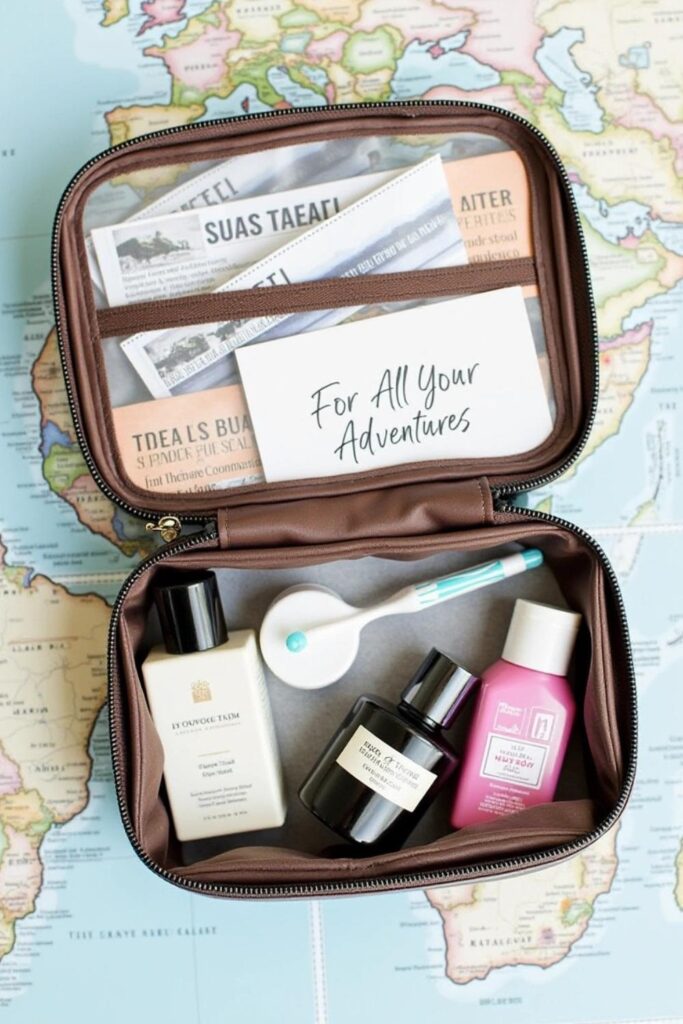 You can even throw in a cozy travel pillow for comfort. Finish it off with a heartfelt handwritten note saying, “For all your journeys, near and far.”
