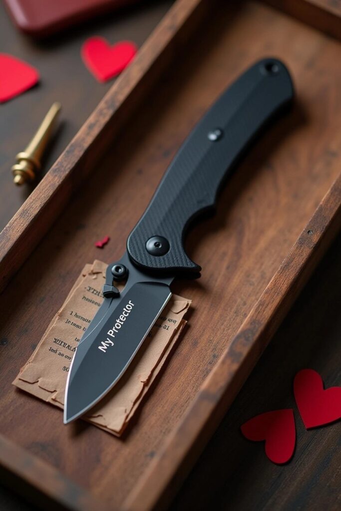 Give a practical pocket knife a personal touch with engraving. Choose a high-quality knife with a smooth handle or blade to customize. Use an engraving tool to etch his initials, a special date, or a meaningful phrase like “My Protector.”