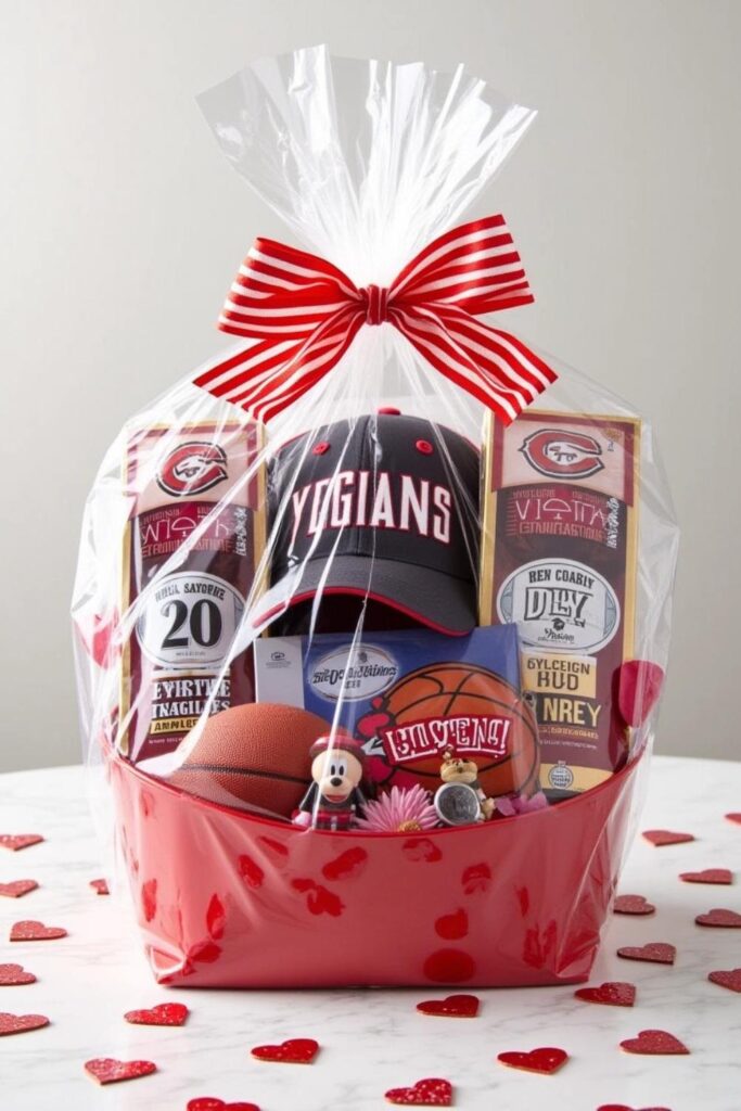 Personalize the basket with a tag reading “For My MVP”. This thoughtful gesture shows you’re tuned into his passions and makes him feel like the ultimate fan.