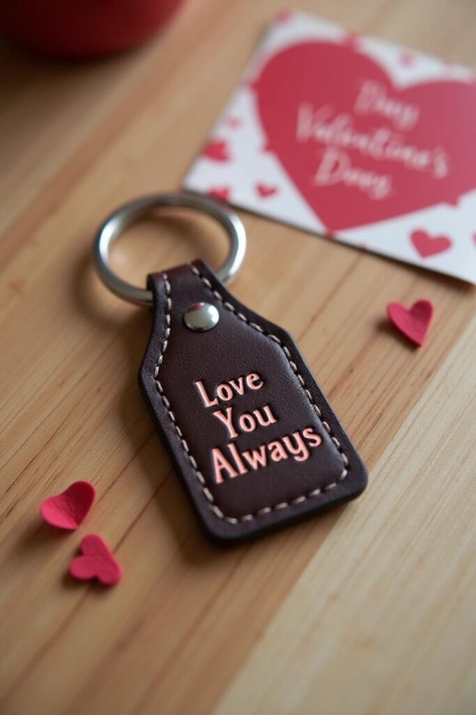 Create a DIY leather keychain that is practical and heartfelt. Choose leather in his favorite color or a neutral tone. Cut it into a rectangle or a special shape like initials or a heart.