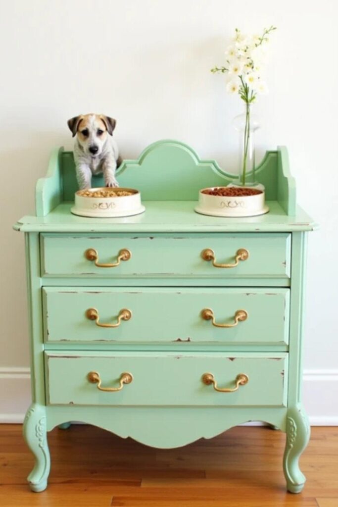 Repurpose a classic mint-green dresser into a chic, vintage feeding station.