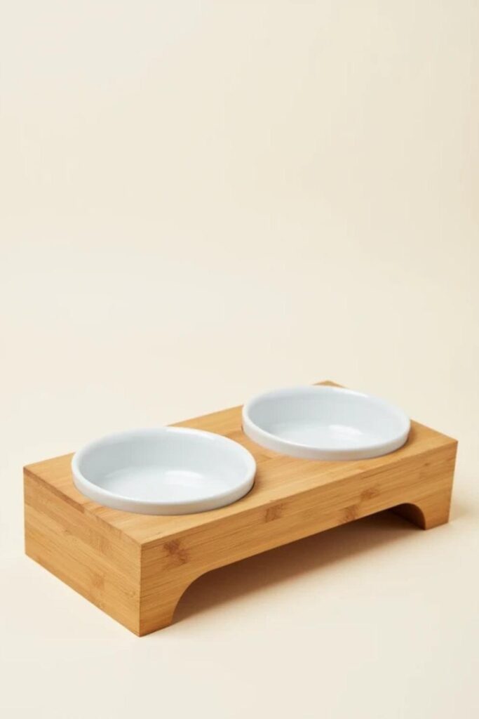 This compact, low-rise station holds two shallow ceramic bowls, ensuring easy access for animals.