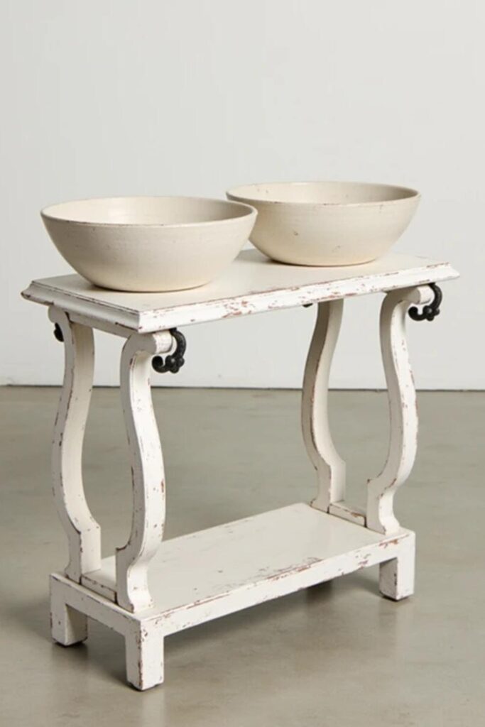 French country or vintage themes, this shabby chic creation blends artistic design with practicality, providing a luxurious feeding station for pets while enhancing your home’s decor.