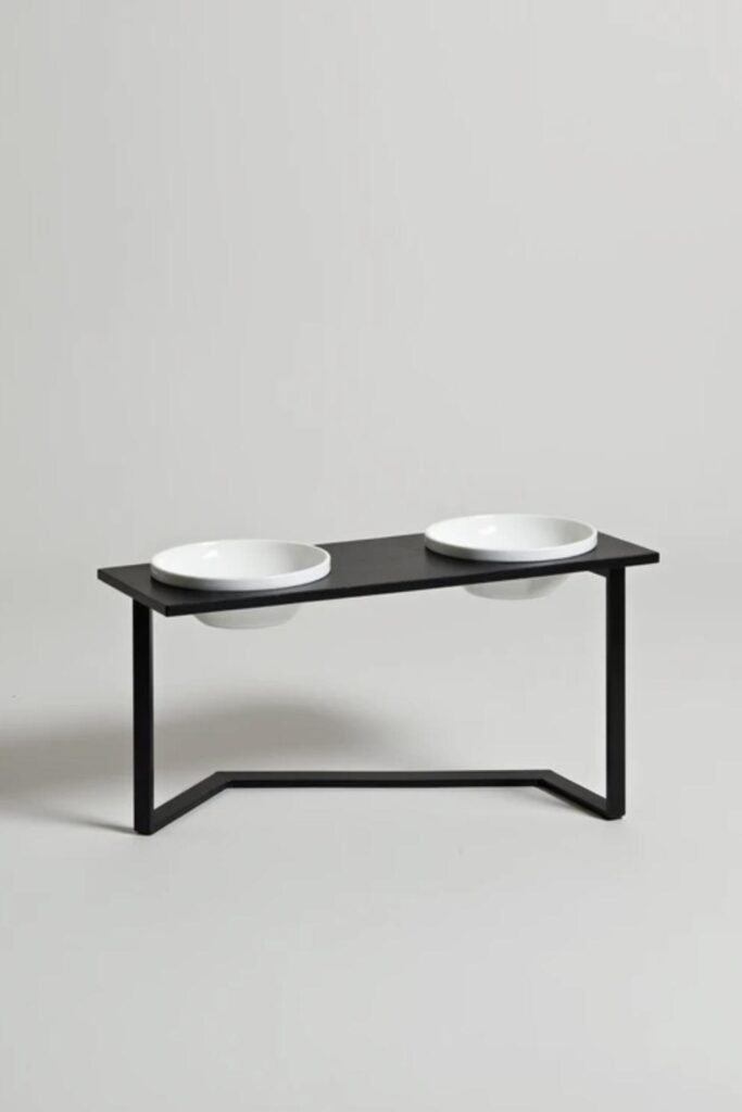 Transform your pet’s feeding station with this sleek, minimalist design. A matte black frame contrasts sharply with white ceramic bowls, creating a chic look for modern homes.