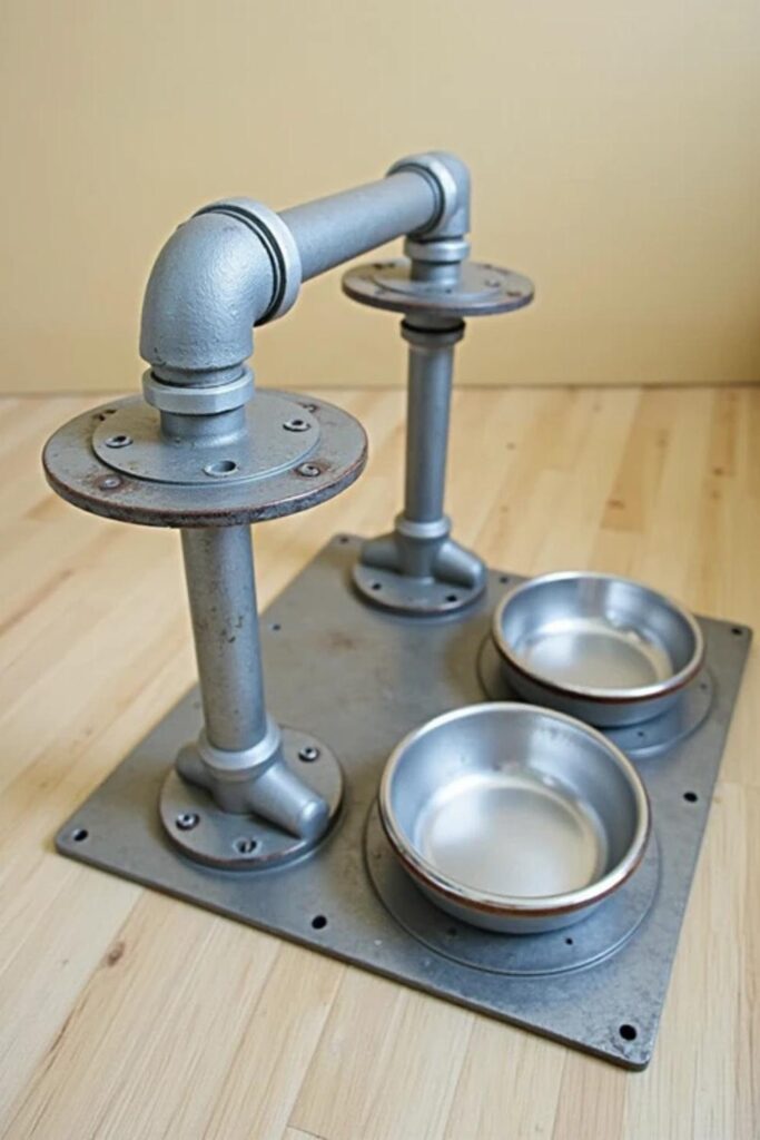 Craft a bold industrial-style feeder using galvanized pipes and metal flanges. This rugged aesthetic pairs steel bowls with sturdy pipe fittings for a robust, stylish creation.