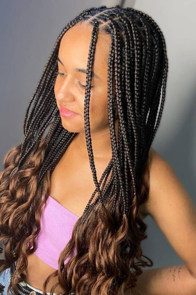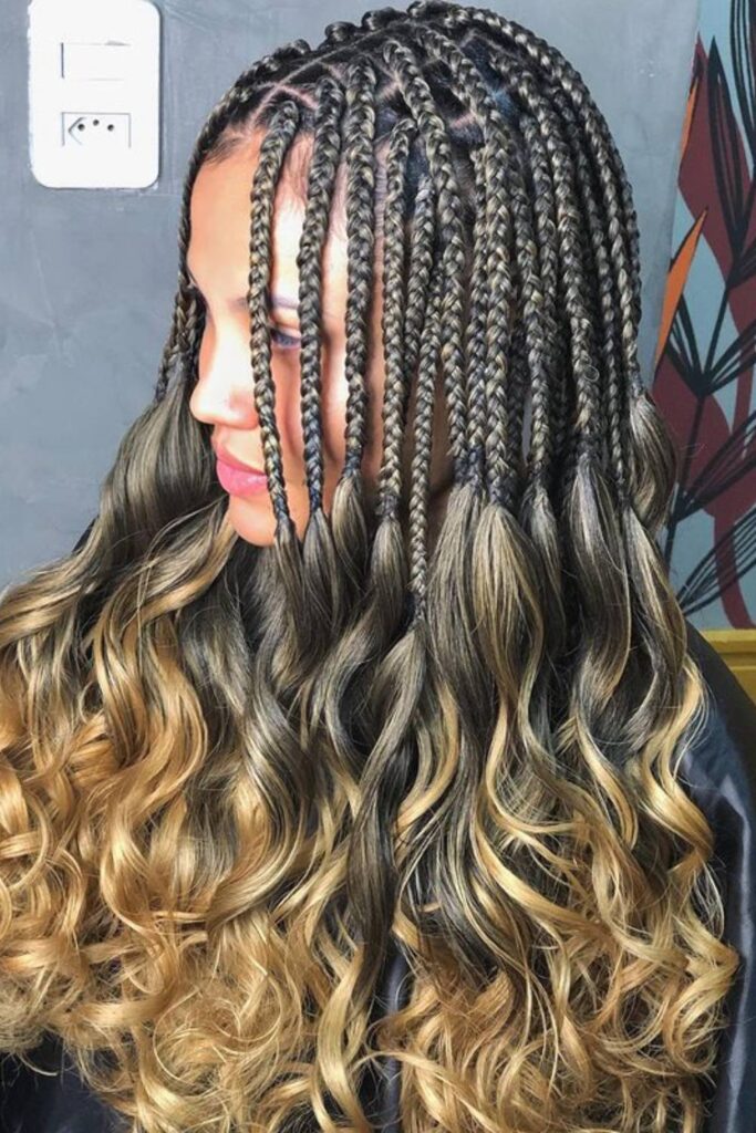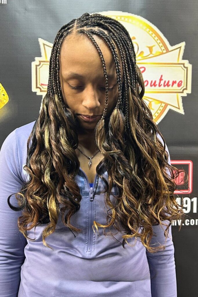 1. French Curl Box Braids with Middle Part