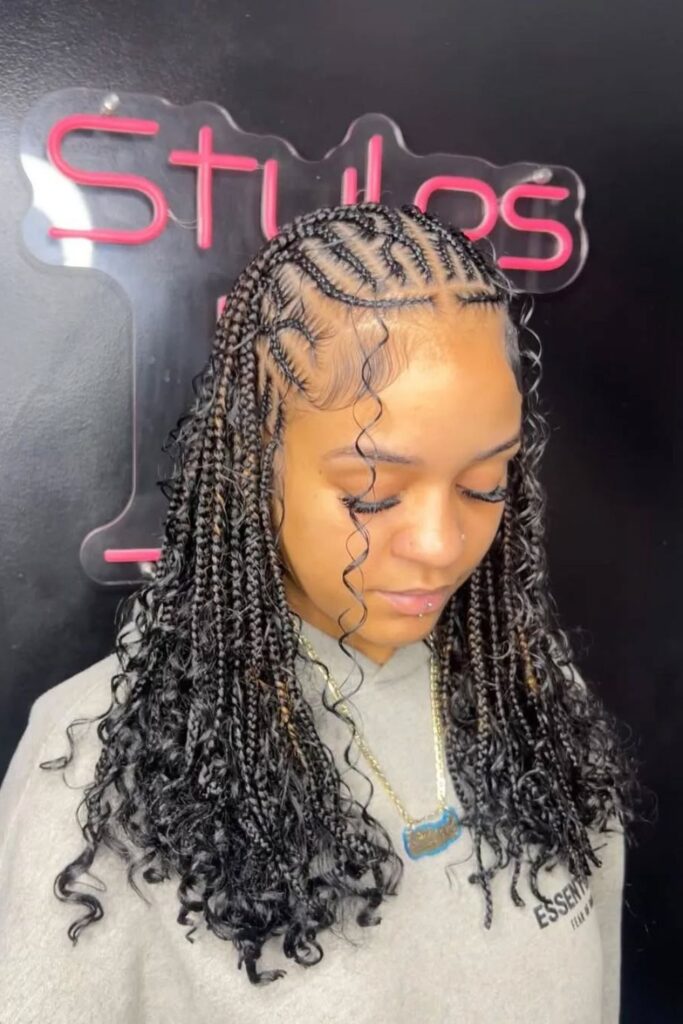 Opt for a playful yet stylish vibe with shoulder-length braids that end in soft, defined curls.