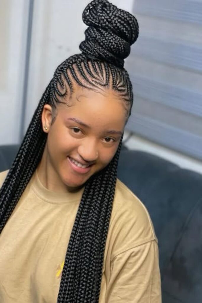Swooped baby hairs frame the face beautifully, offering a modern, elegant twist to traditional braids.