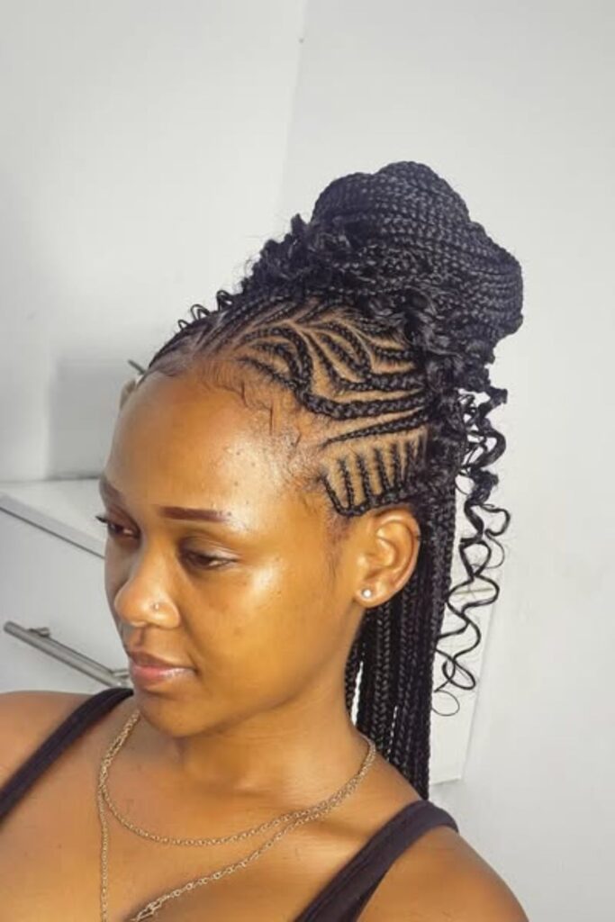 This creative design blends cultural beauty with contemporary flair, offering the perfect hairstyle for someone who loves standout designs that work for any occasion.
