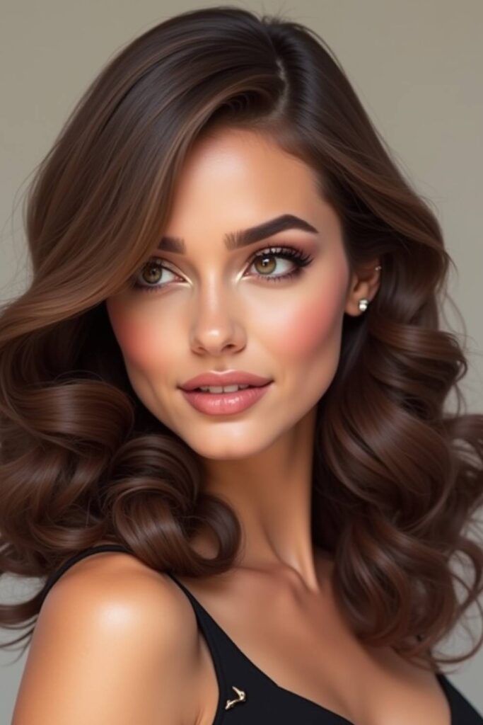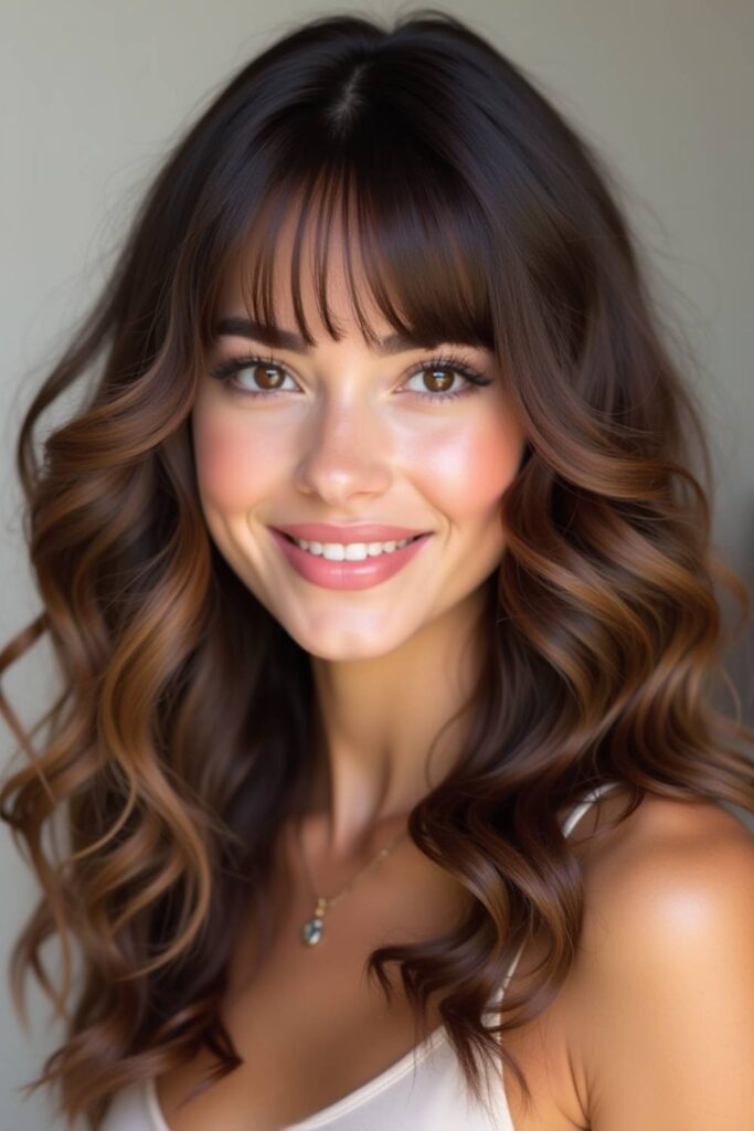 Glam Waves with Soft Fringe offer a modern twist on classic waves, adding a soft fringe to frame the face. Use a medium-barrel curling iron for the waves, while styling the fringe separately for a seamless blend.
