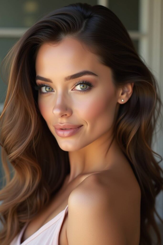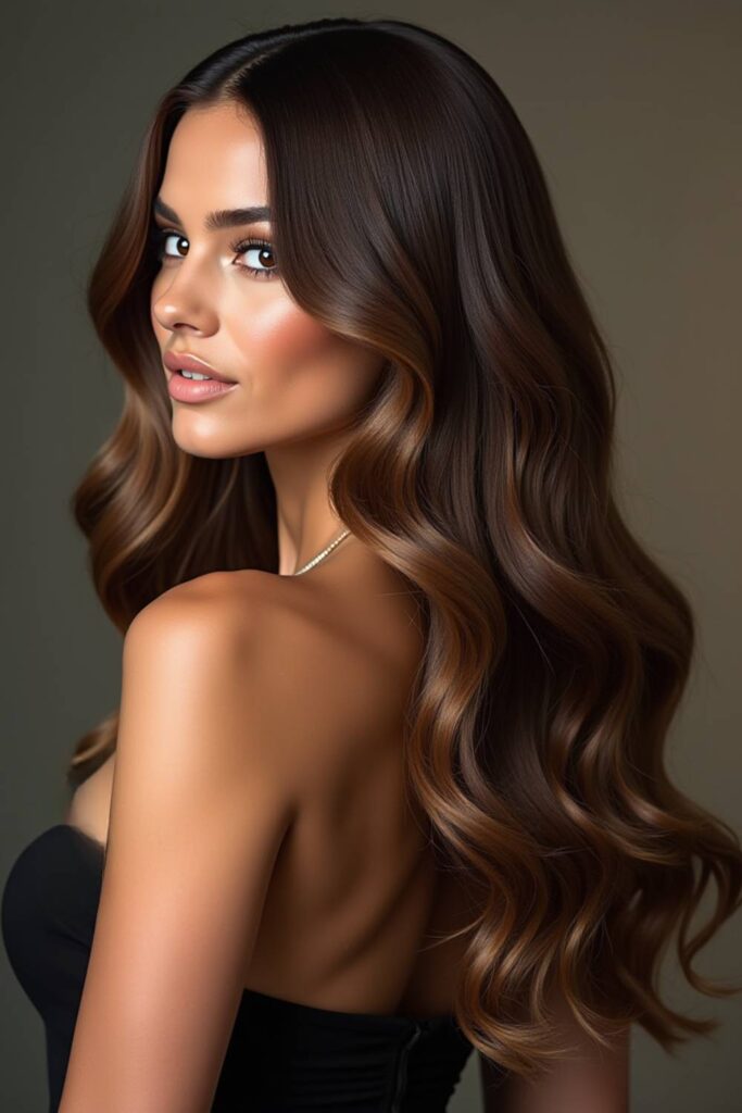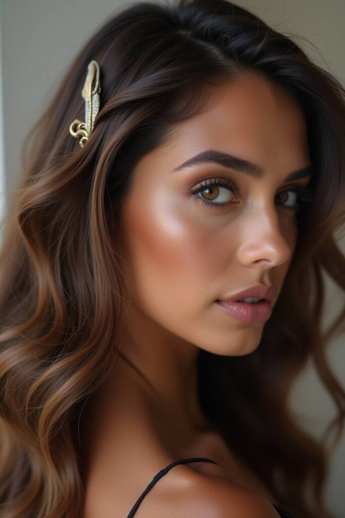 This style enhances dimension and softness, especially for long or medium-length hair. Minimal accessories keep the focus on the face-framing layers and elegant waves.