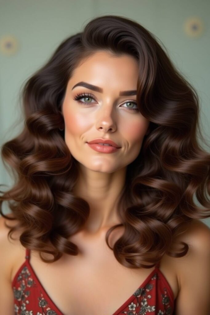 A deep side part enhances the charm, reminiscent of the golden Hollywood era. For a modern look, you can add a sparkly hair clip or vintage brooch to the side with less volume.