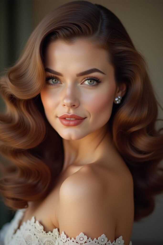 For a wedding look with retro flair, Vintage Pin-Up Glam Waves offer structured, defined waves that scream classic pin-up style.