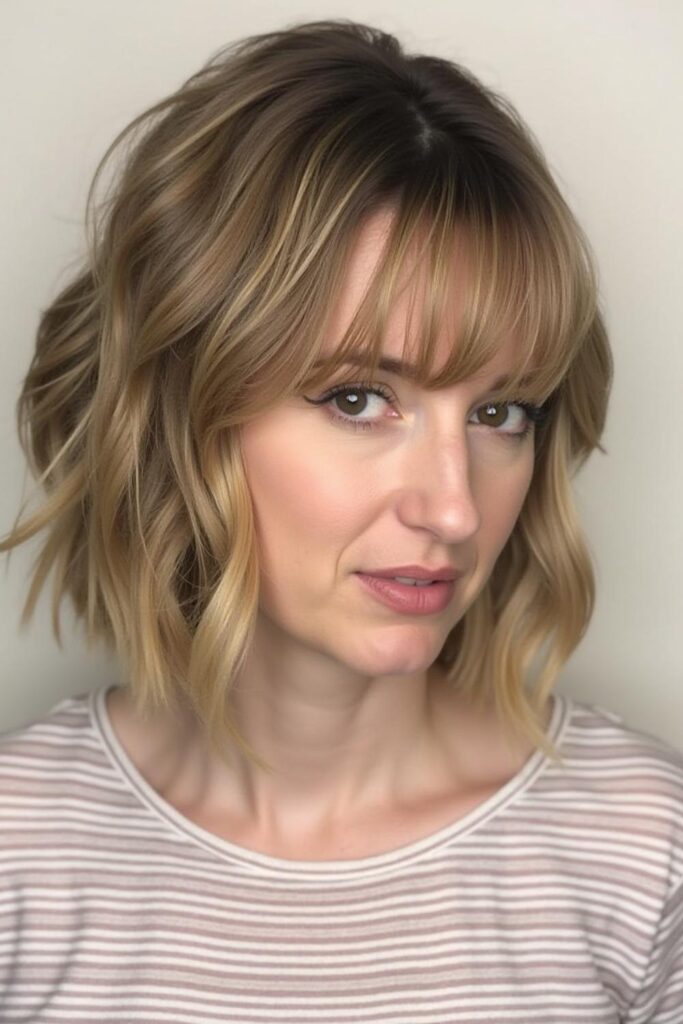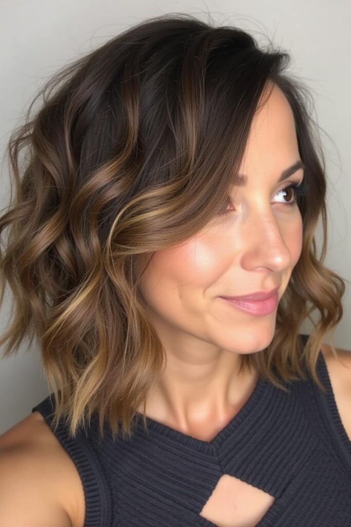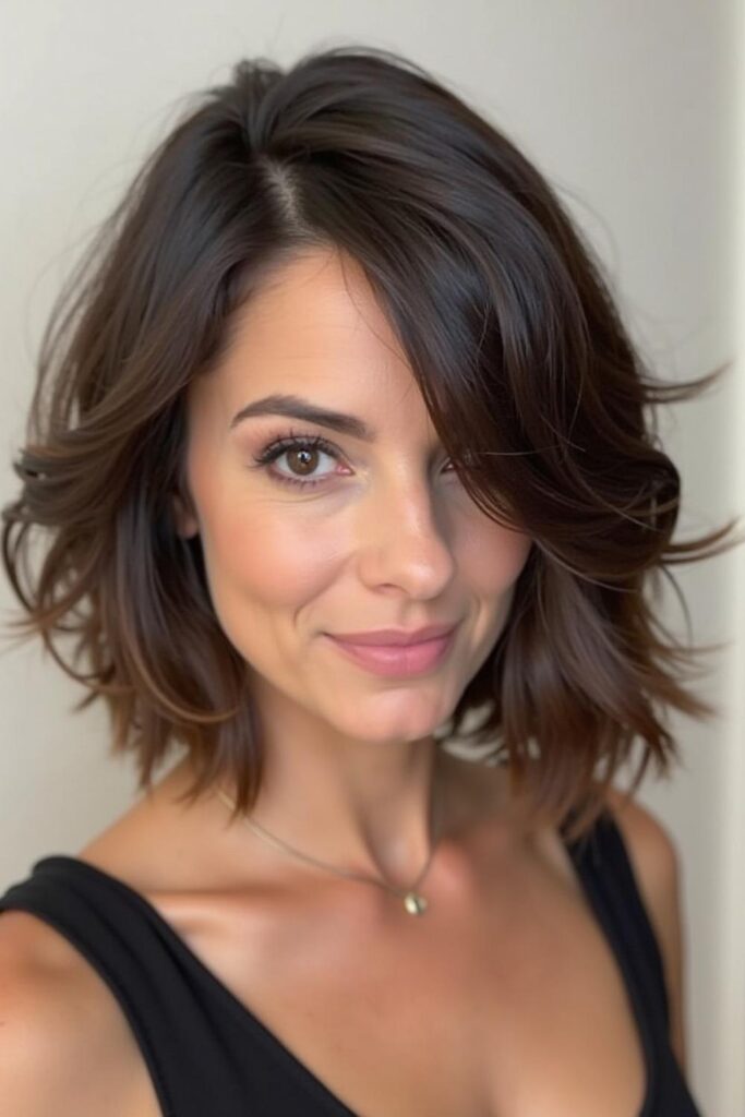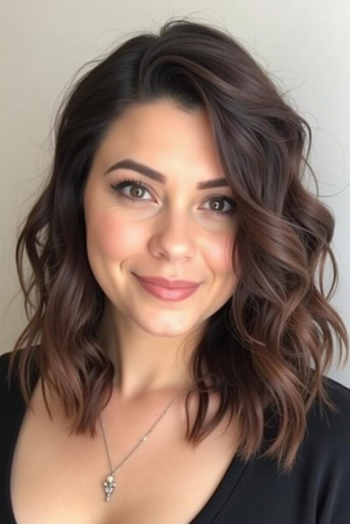 The Tousled Layered Lob delivers a breezy, effortlessly chic vibe that beautifully softens fuller faces.