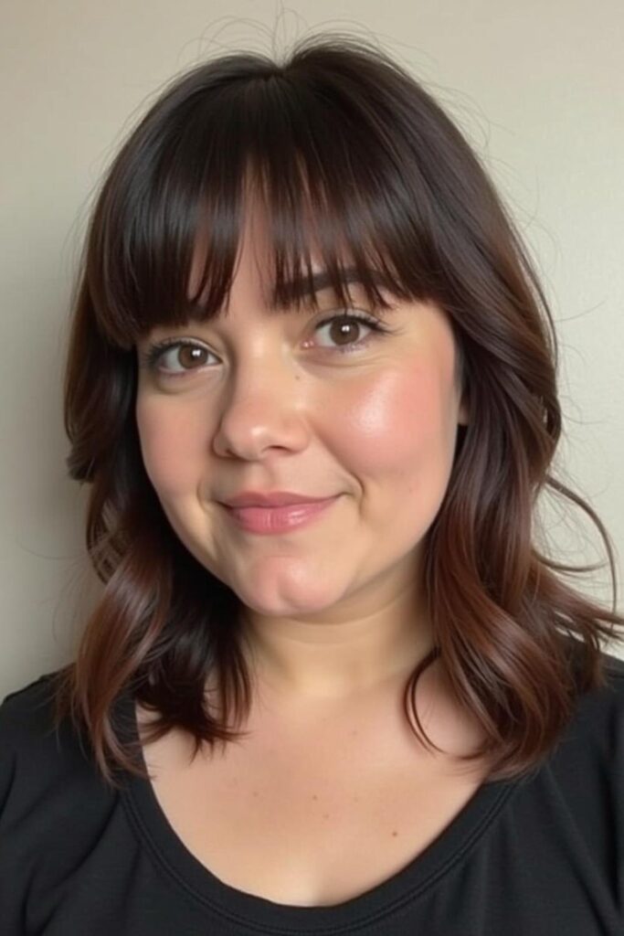 The Bouncy Bob with Bangs brings a youthful and playful glow to rounder face shapes.