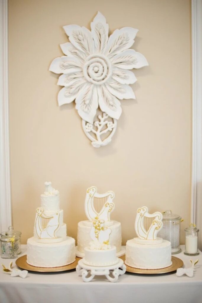 Immerse guests in serenity with live harp music or soft instrumental tunes in the background. Incorporate musical note motifs into the decor with custom banners or table settings.