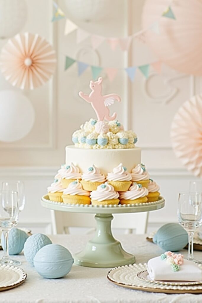 Finish with accents of glitter or pearl detailing to elevate the ethereal tone, offering guests a sneak peek at the heavenly celebration ahead.