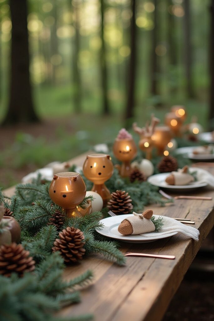 Bring the beauty of a nature-inspired wonderland to life with pine cones, rich greenery, and earthy brown accents. Use woodland creatures like deer or owls for adorable touches.