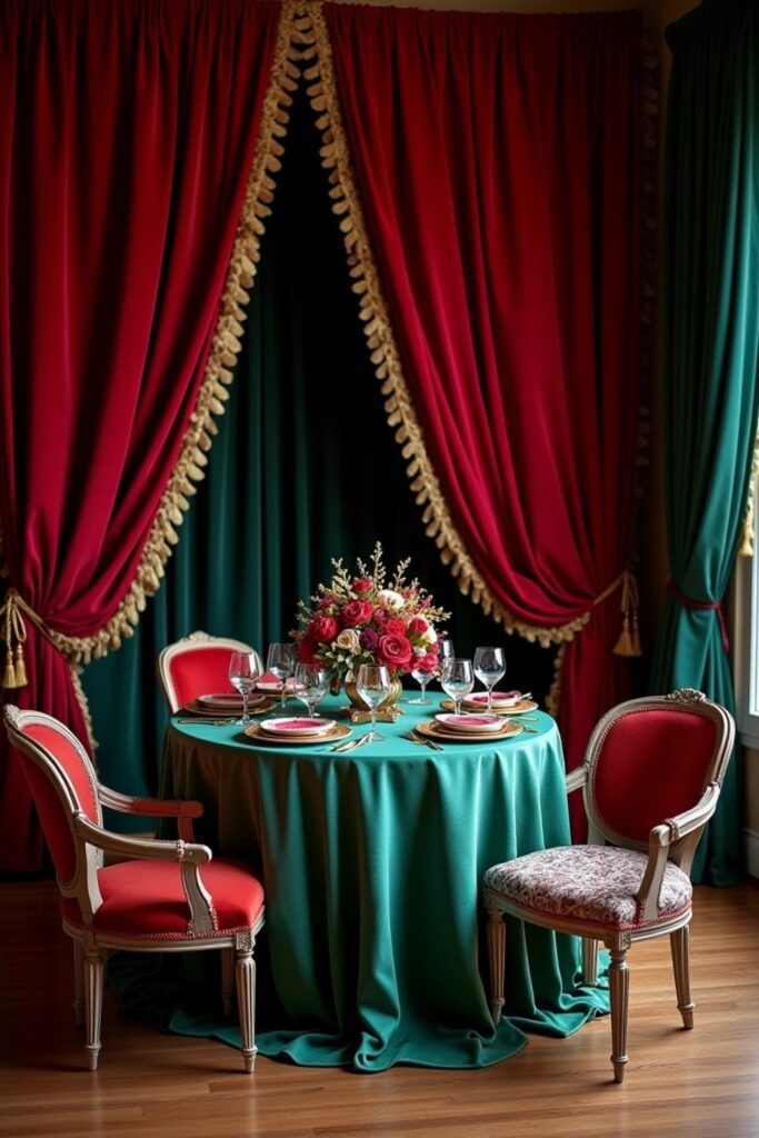 Use shimmering fabrics, dramatic centerpieces, and candles to create an elegant and warm atmosphere.