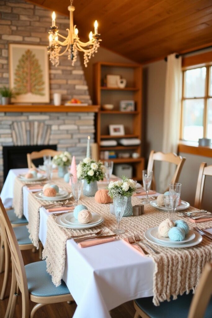 Place yarn balls in jars or as playful centerpieces, and drape blankets or shawls over seating for a warm vibe.