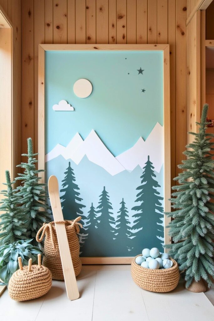 Turn your space into a snowy mountaintop retreat with mountain-themed backdrops and rustic wooden decorations.