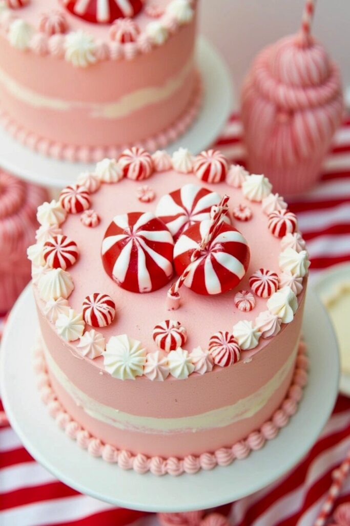 Add peppermint-themed details, like candy cane centerpieces and striped tablecloths. Include pops of green for contrast and hang oversized candy decorations for a playful touch.