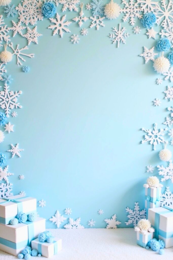 Create a dazzling winter wonderland with delicate snowflake decorations everywhere. Use silver and icy blue hues for everything from tableware to hanging ornaments.