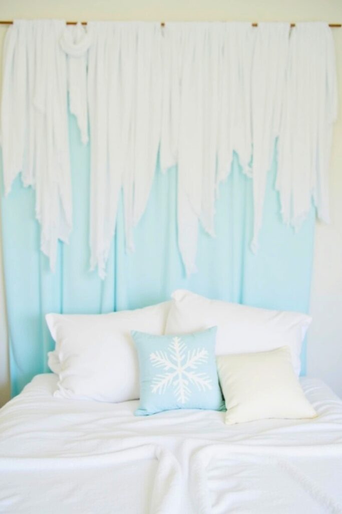 Use silver and ice-blue tones to make the space feel magical. Drape translucent fabrics to mimic glistening ice.