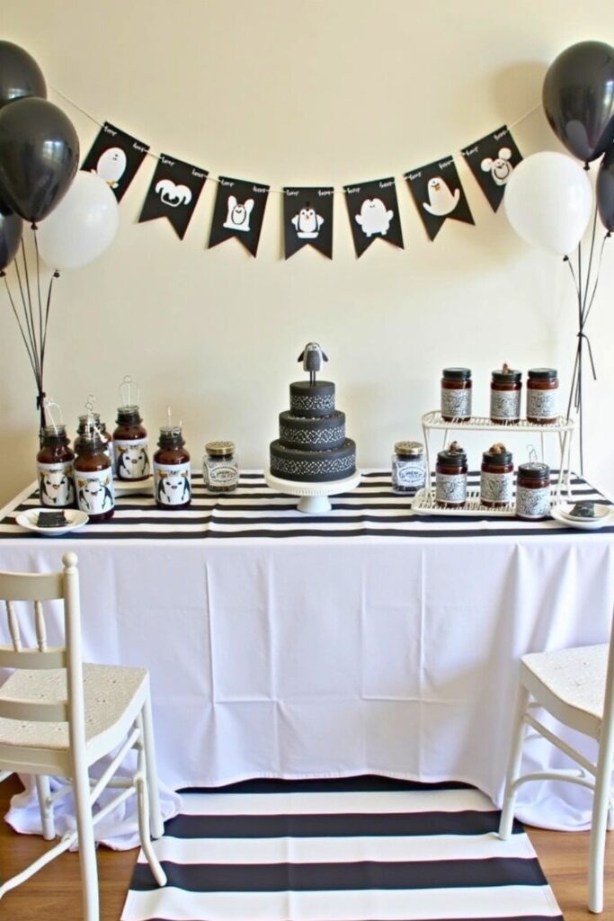 Incorporate adorable penguin figurines or cutouts throughout the space. For table settings, use striped napkins or black tablecloths.