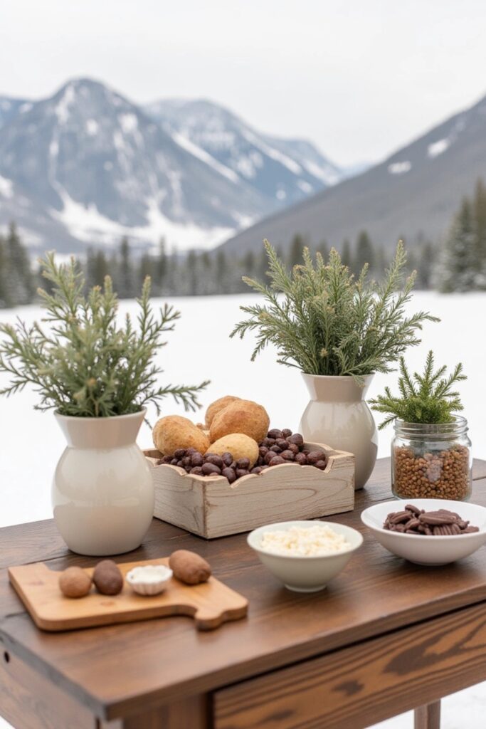 Create a cozy Hot Cocoa Bar with assorted flavors like peppermint, caramel, or classic chocolate.