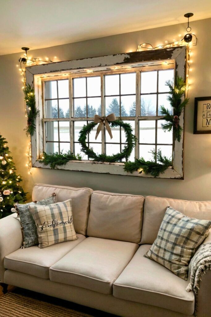 Add a touch of rustic charm to your living room with an antique window frame. This endearing piece is ideal for farmhouse or vintage-themed spaces.