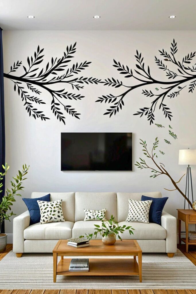 Elevate your living room decor effortlessly with wall decals or stickers. These are a flexible and affordable way to add personality without the need for permanent fixtures.