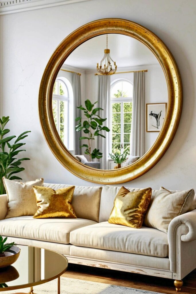 These mirrors not only reflect light to enhance the room’s brightness but also add depth, making the space feel open and airy. This versatile idea seamlessly fits into both modern and vintage styles, offering a fresh update that brightens your living area.