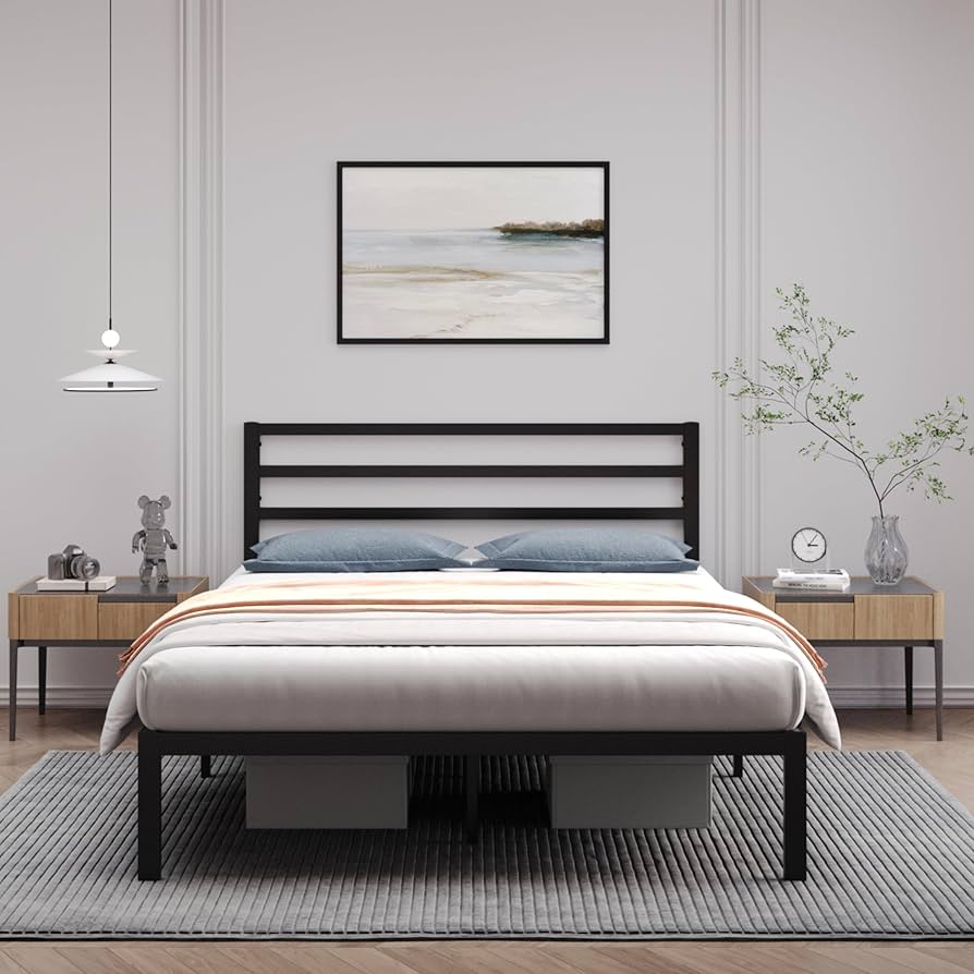 Metal beds scare people, but low-profile versions work beautifully. I used a slim black metal frame once, and it almost disappeared into the room.