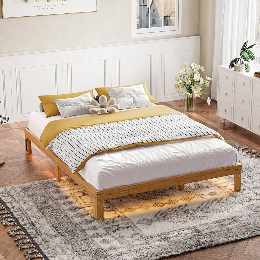 Subtle LED lighting adds glow without clutter. I love soft under-bed lighting for nighttime vibes.