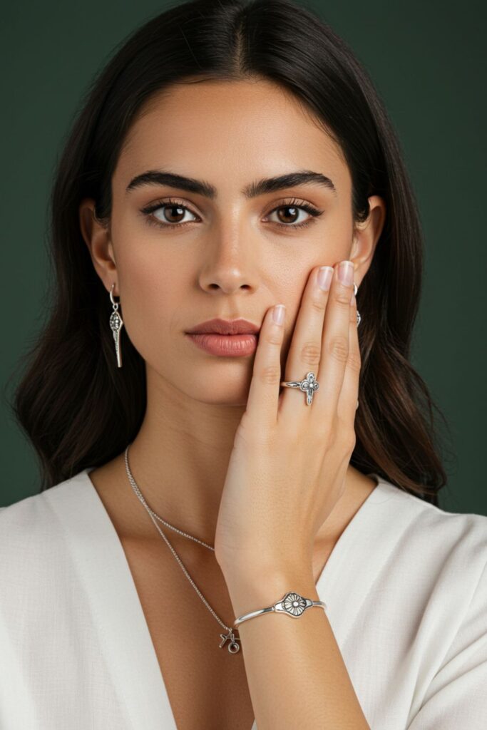 Adorn yourself with sleek silver jewelry that whispers of heritage.