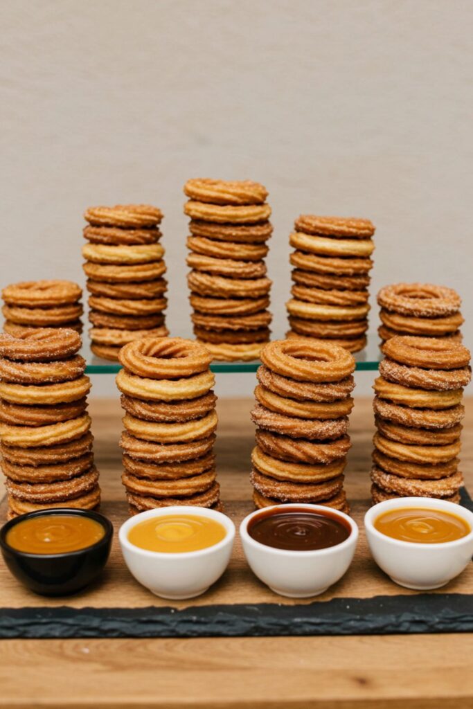 Create a dessert your guests won’t forget with individual churro stacks arranged into chic mini towers.